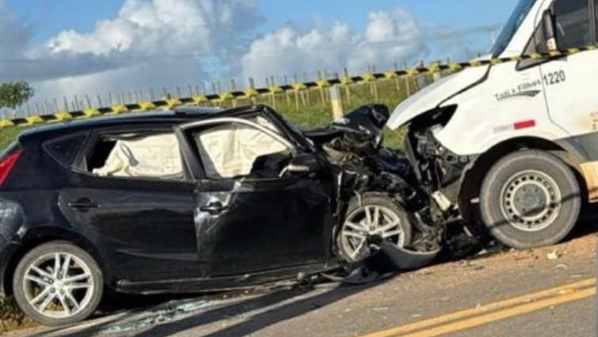 A van pertence à prefeitura do município, e o motorista do carro menor morreu no local.