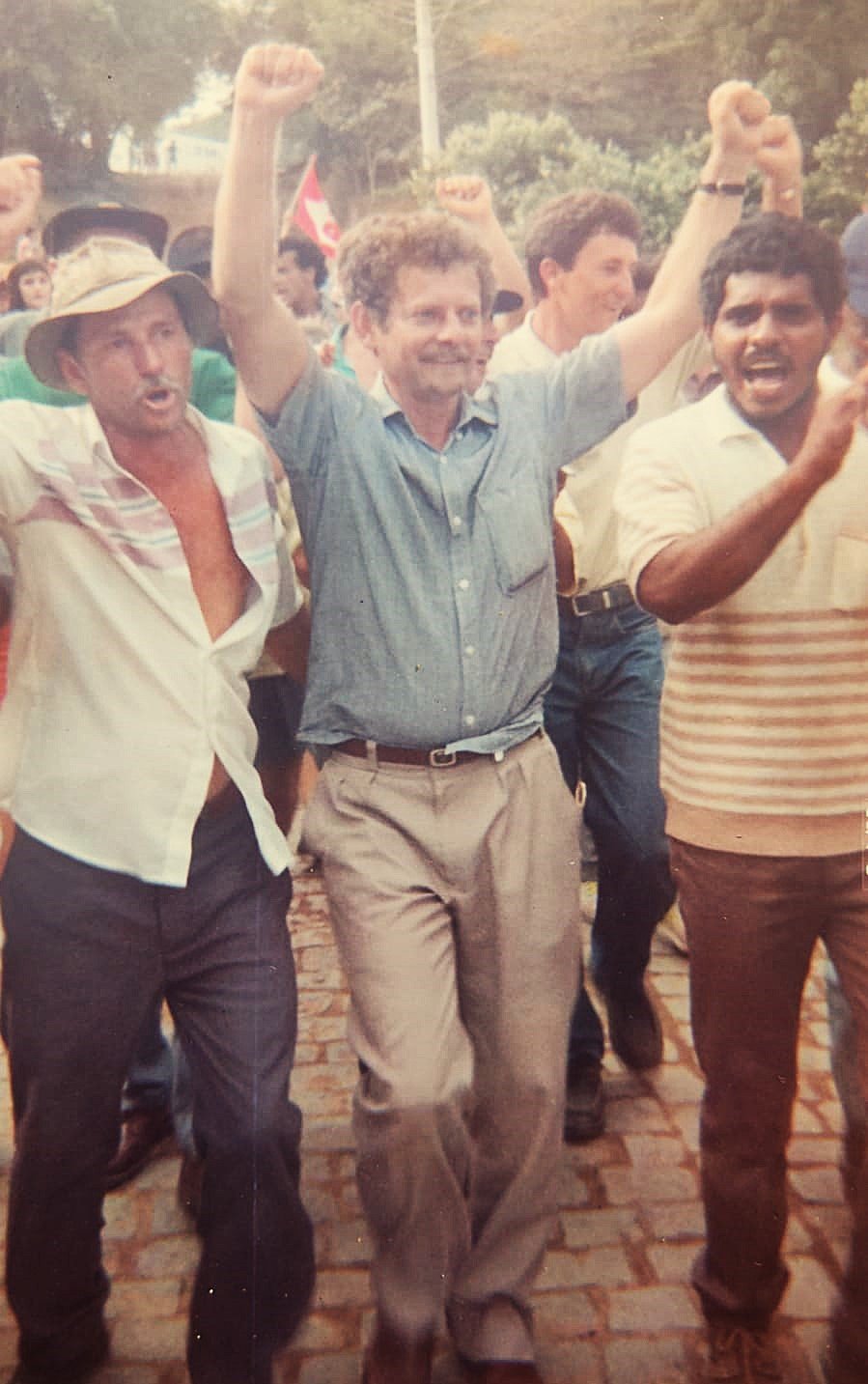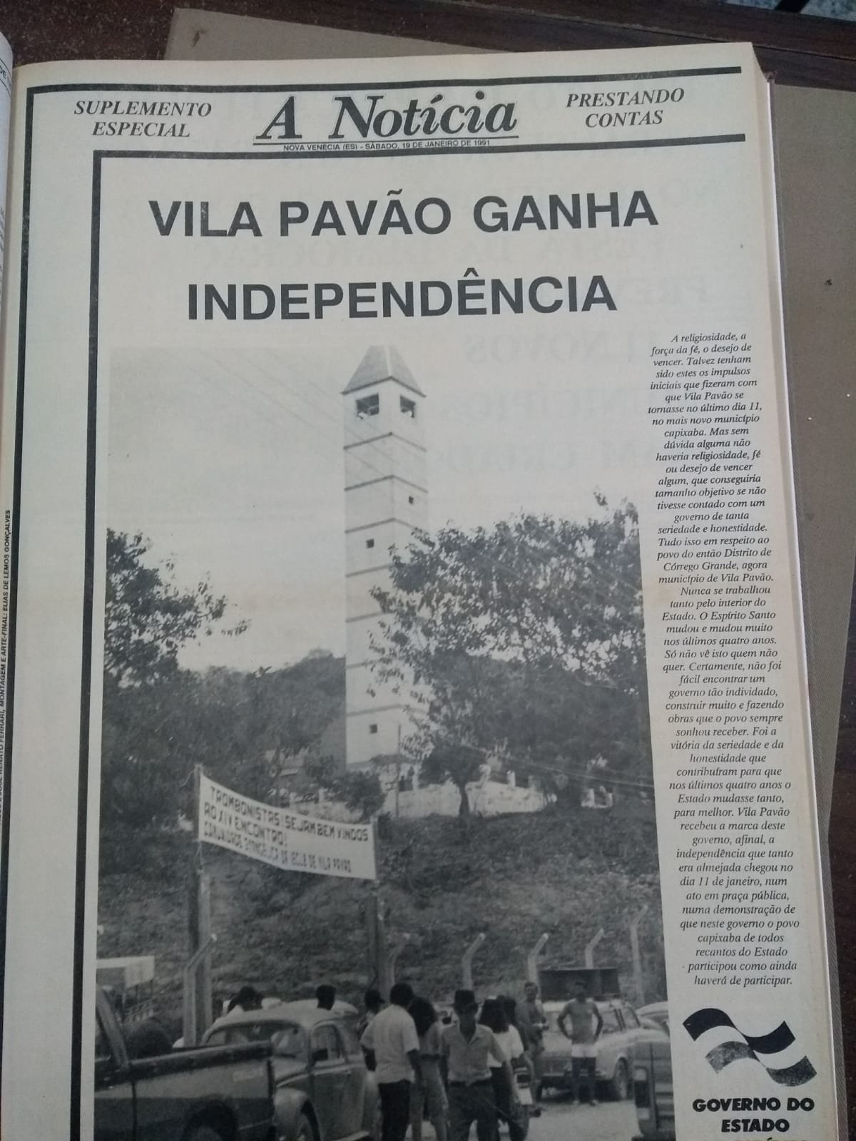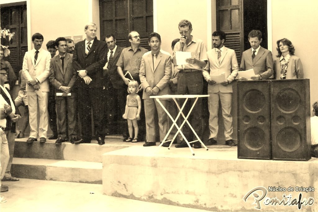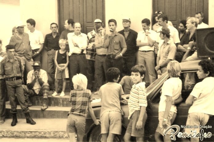 » Comício pela emancipação política de Vila Pavão em 1989, na calçada do Cartório