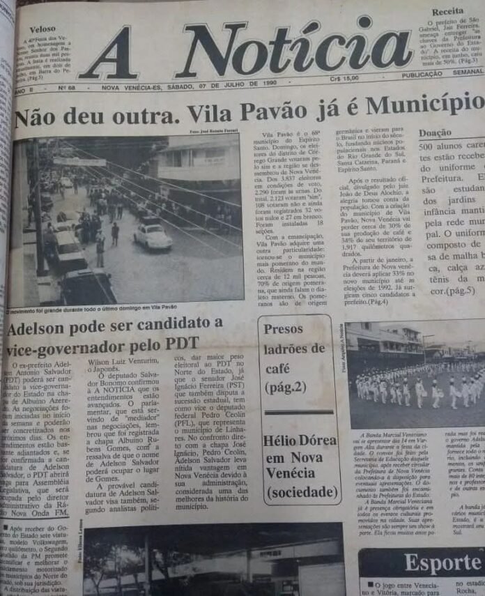Nesta terça-feira, dia 1º de julho, Vila Pavão comemora 35 anos de emancipação política, reafirmando seu compromisso com a preservação das raízes, da agricultura familiar e da diversidade cultural. Com a maior parte da população vivendo na zona rural, o município se destaca pela valorização das pequenas propriedades, que garantem o sustento das famílias e mantêm vivas as tradições locais.