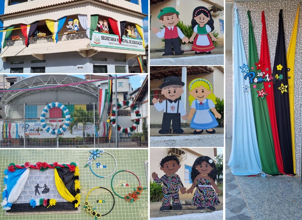 A sede de Vila Pavão já está imersa no clima festivo da Pomitafro. Quem chega é imediatamente envolvido por uma explosão de cores que toma conta dos postes, fachadas das casas e prédios públicos e vitrines dos estabelecimentos comerciais. A ornamentação, uma tradição que envolve a Prefeitura, por meio da Secretaria Municipal de Cultura e Turismo, além de comerciantes e moradores, exibem bandeiras, simbolos e enfeites nas cores representativas das três etnias que moldam a identidade do povo pavoense: o branco e azul dos pomeranos, o verde e vermelho dos italianos, e o preto e amarelo dos afro-brasileiros.