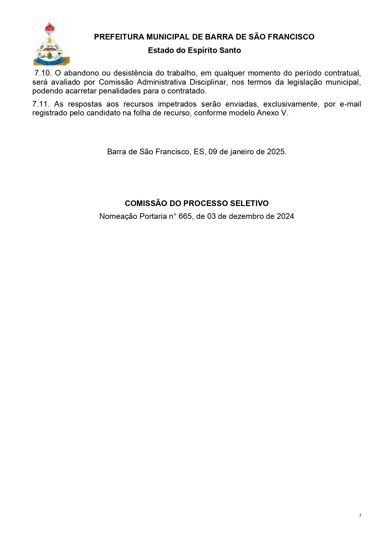 A classificação dos candidatos será divulgada no site da Prefeitura Municipal de Barra de São Francisco/ES, www.pmbsf.es.gov.br.